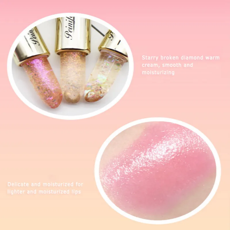 New Diamond Glitter Powder Color Starry Broken Jelly Lipstick Flower Lipstick Transparent Temperature Change Matte Lipstic TSLM1