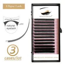 3 Cases Eyelashmart Flat Ellipse Eyelashes Extensions Split Tips Ellipse Shaped Natural Light False Ellipse Eyelashes Supplies