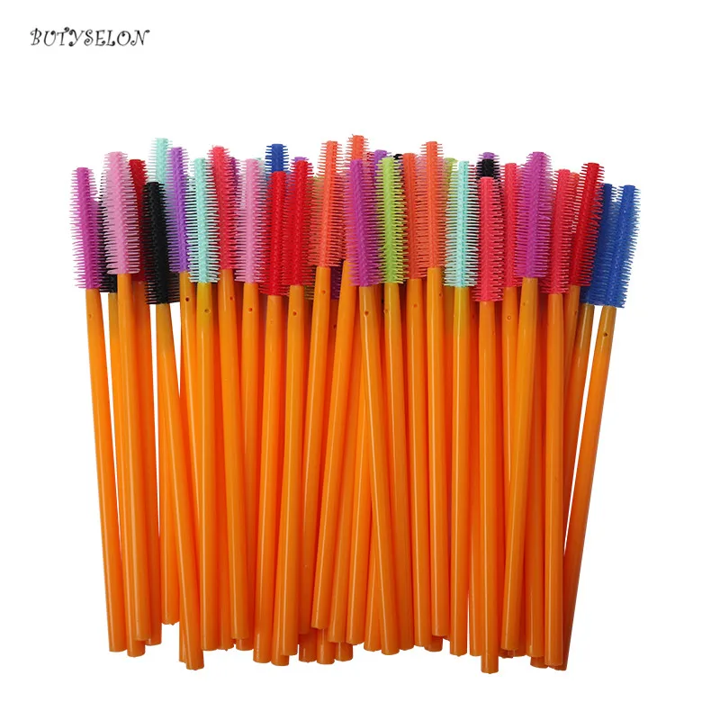| 100Pcs Colorful Disposable Makeup Silicone Brushes Eyelash Extension Mascara Wands Applicator Makeup Tools Brushes |