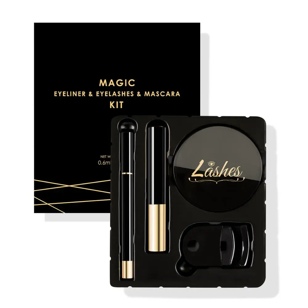 | 2020 New Arrival Magic No Magnet Eyelash Magic False Eyelash 3 Pairs Lashes & Magic Eyeliner & Mascara & Eyelash Curler Set |